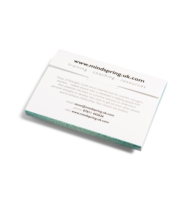 These 24 strengths cards are an essential tool for coaches, managers, teachers – indeed, anyone who is interested in helping people fulfil their potential. Based on the 24 character strengths that define what’s best about people, they can be used as a positive resource to understand personal strengths; to develop new ones; to get to know other people and to enhance relationships. Your choices are endless!